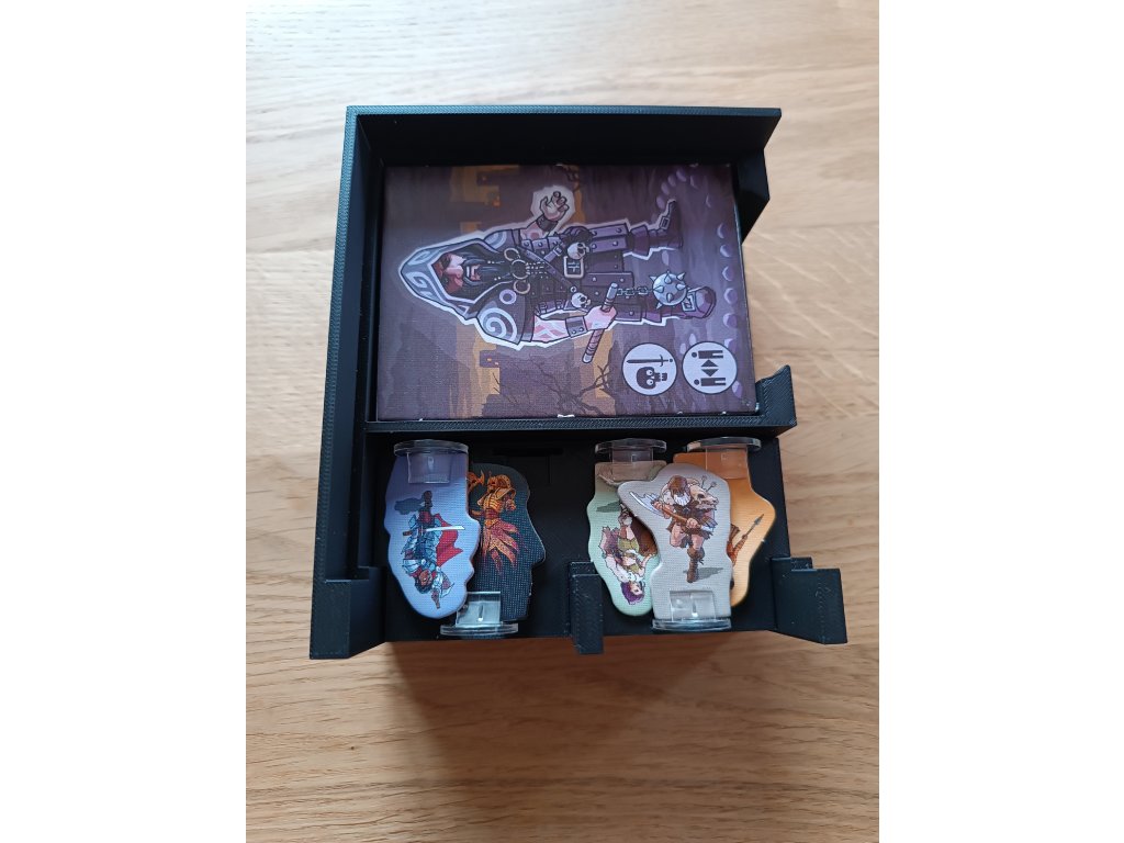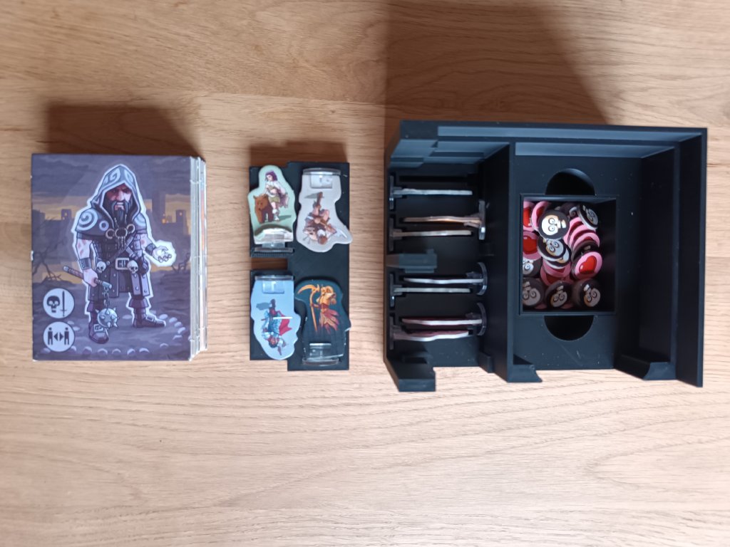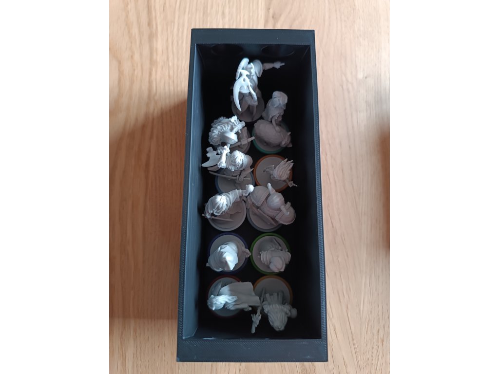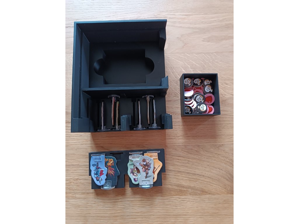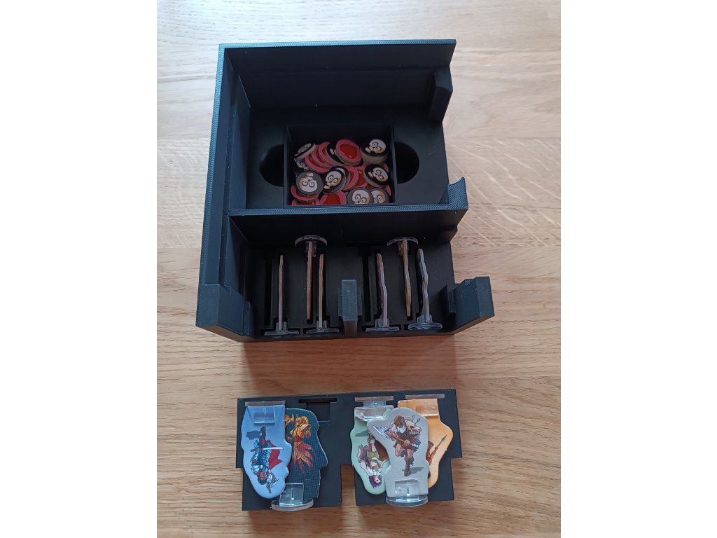 Balení neobsahuje: mřížky, žetony života a rozšíření inventáře, ale v insertu je možné skladovat hru jak základní, tak i s vylepšenými komponenty.