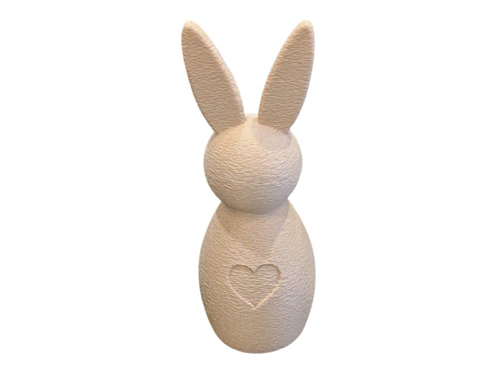 Zajíček si zachovává čistou minimalistickou siluetu i roztomilé srdíčko na bříšku, takže působí něžně, moderně a velmi vkusně. Skvěle se hodí jako velikonoční dekorace i jako celoroční doplněk do útulného interiéru.